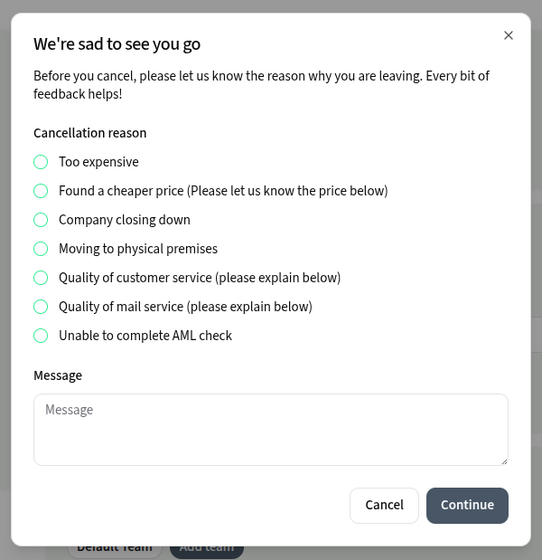- Provide a reason for cancellation and press continue