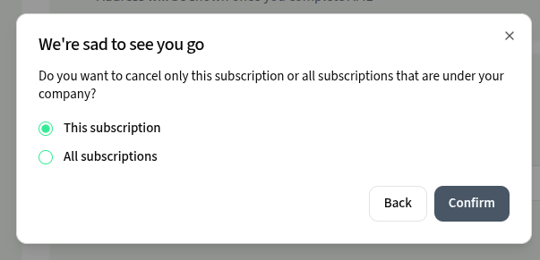 - If you are looking to cancel all subscriptions, make sure you select this on the next page then press confirm which will submit the cancellation request for you.